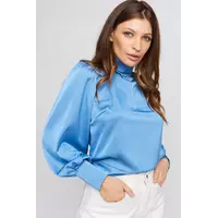 Блуза из шёлка с открытой спиной; воротник - стойка; широкие манжеты; застежка- пуговицы, на поясе завязка.