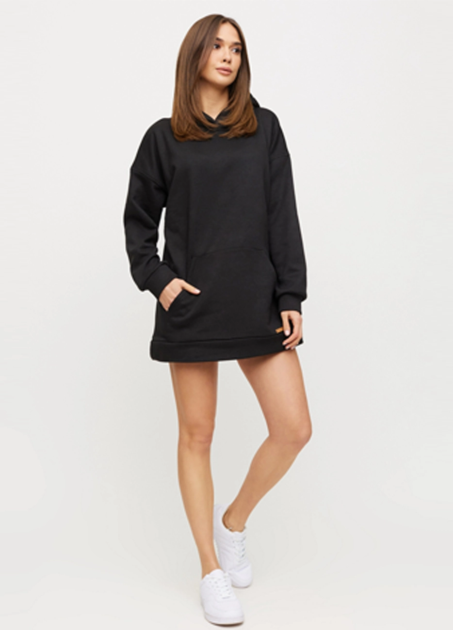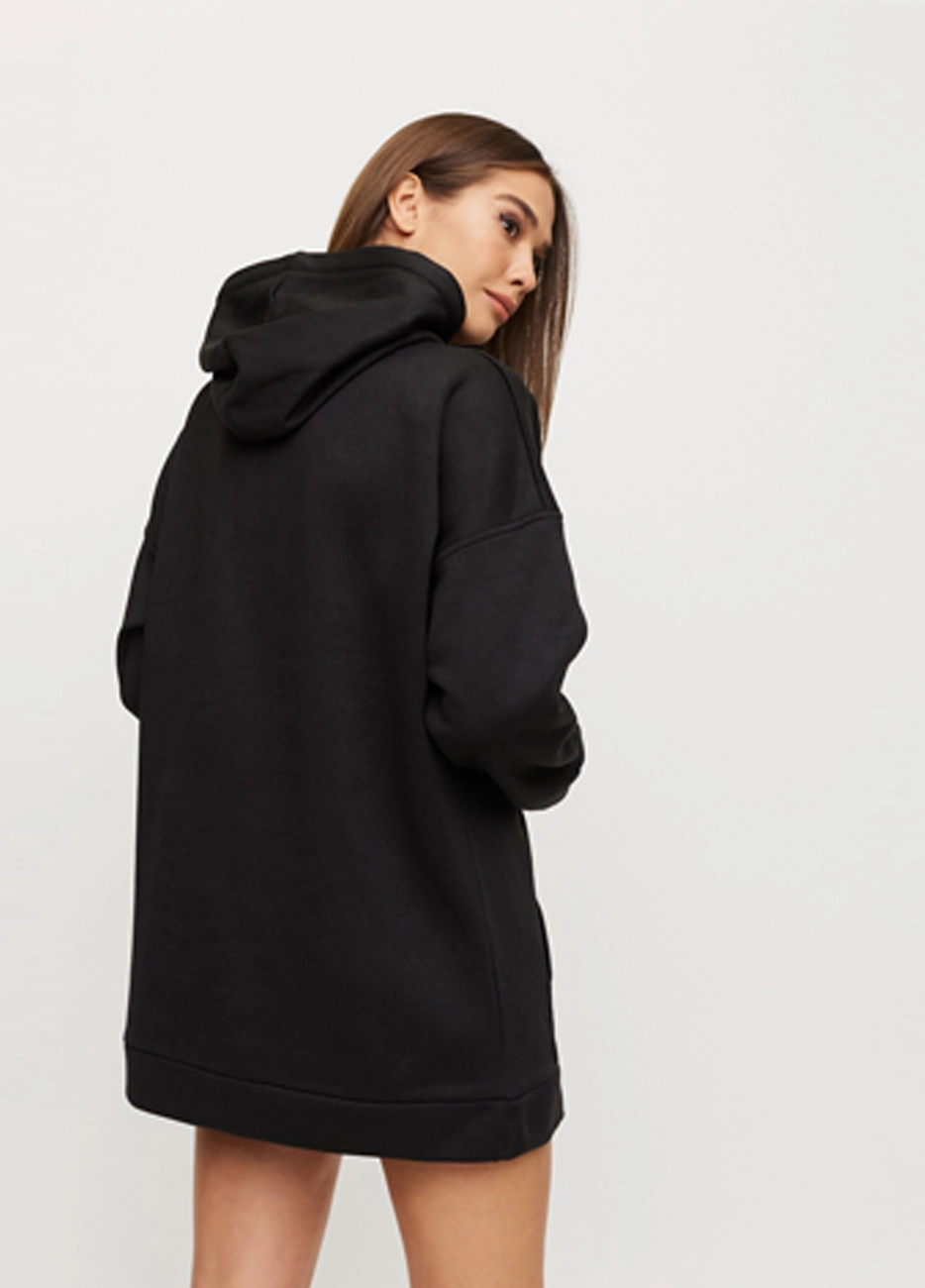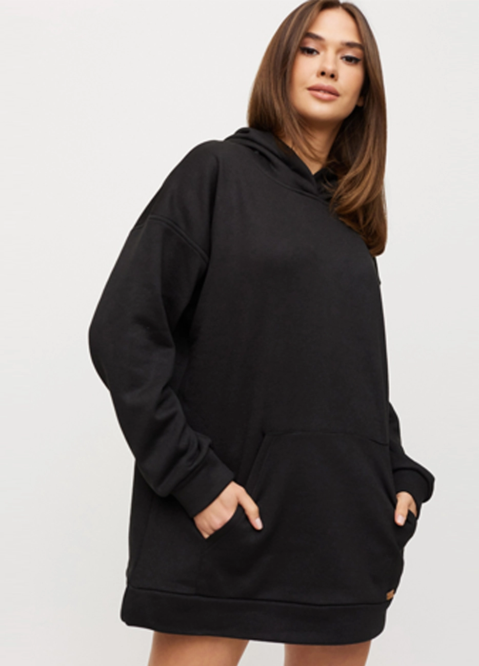 Удлиненный худи из плотного трикотажа с начесом, спущенная линия плеча, капюшон, широкий рукав, впереди карман-кенгуру, на рукавах и по низу изделия манжеты