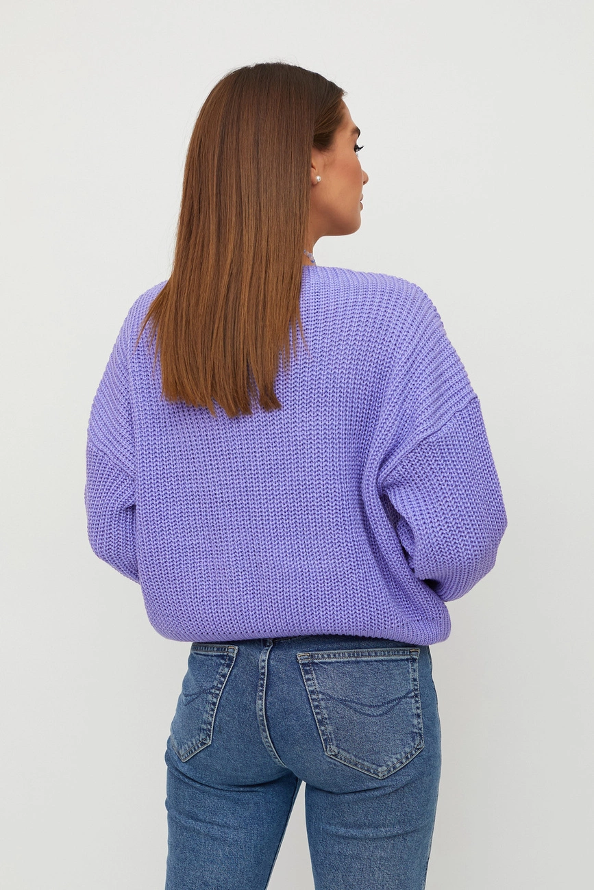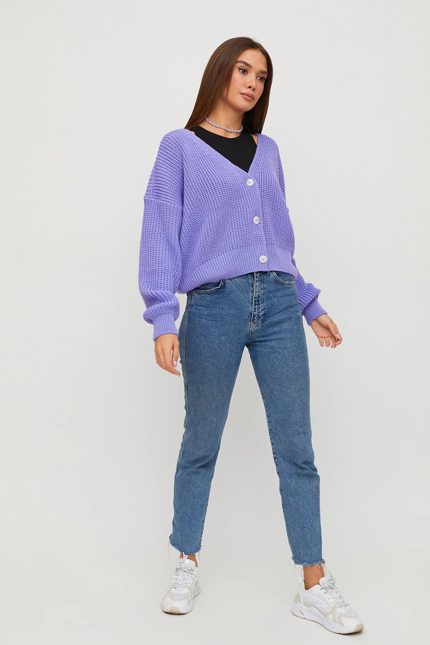 Кардиган oversize из теплого вязанного трикотажа с добавлением шерсти, глубокий V-образный вырез, спущенная линия плеча, манжеты на рукавах и по низу изделия