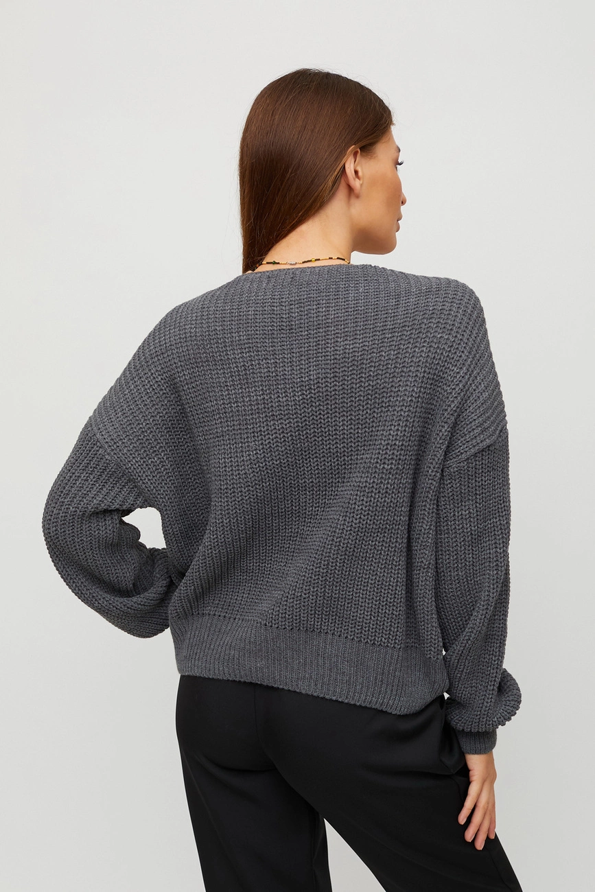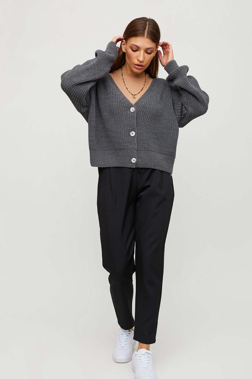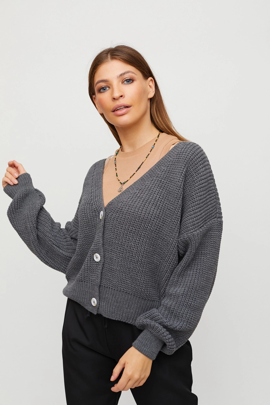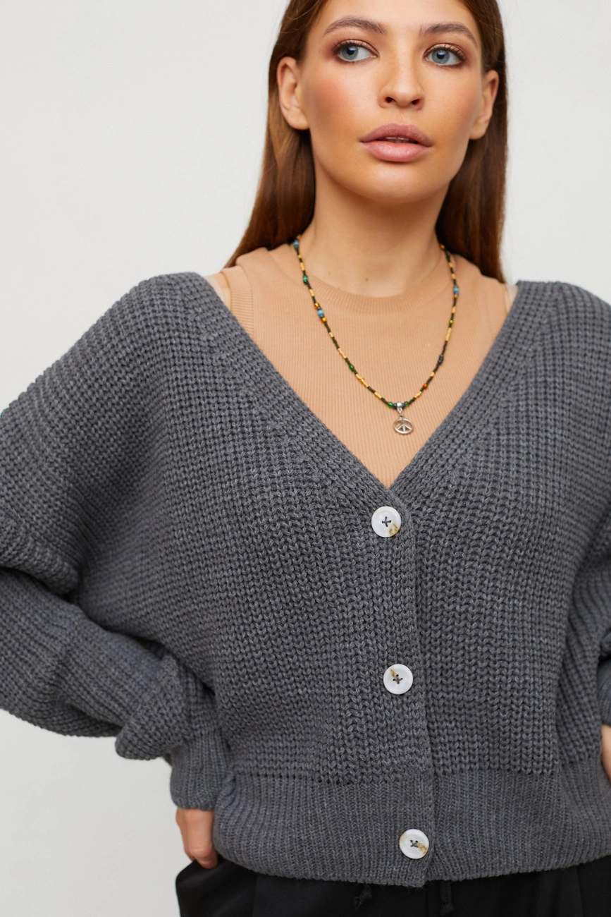 Кардиган oversize из теплого вязанного трикотажа с добавлением шерсти, глубокий V-образный вырез, спущенная линия плеча, манжеты на рукавах и по низу изделия
