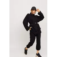 Костюм кофта и штаны из трехнити с ппетлей: кофта oversize кроя на кнопках, накладные карманы, без манжета; брюки с манжетами, есть карманы; пояс с фастексом в комплекте