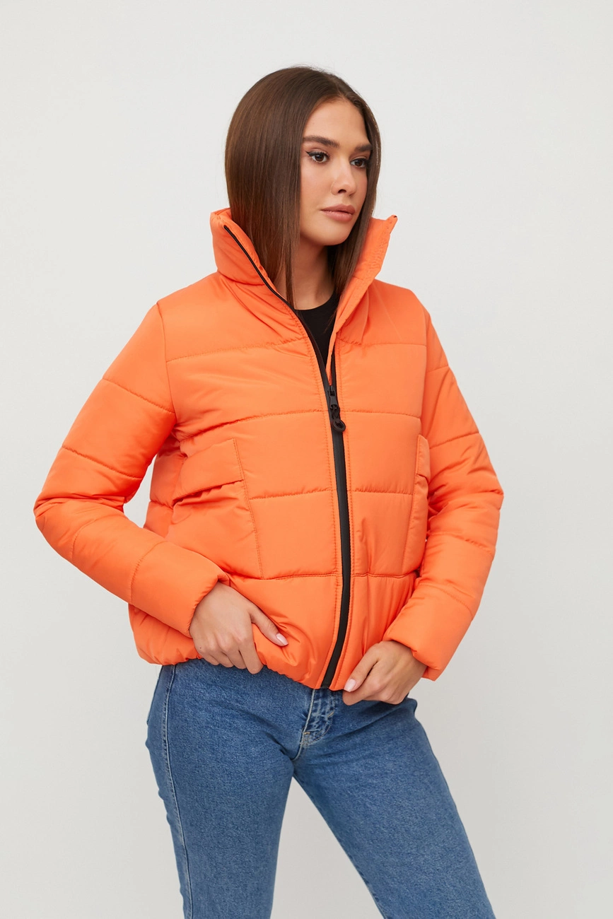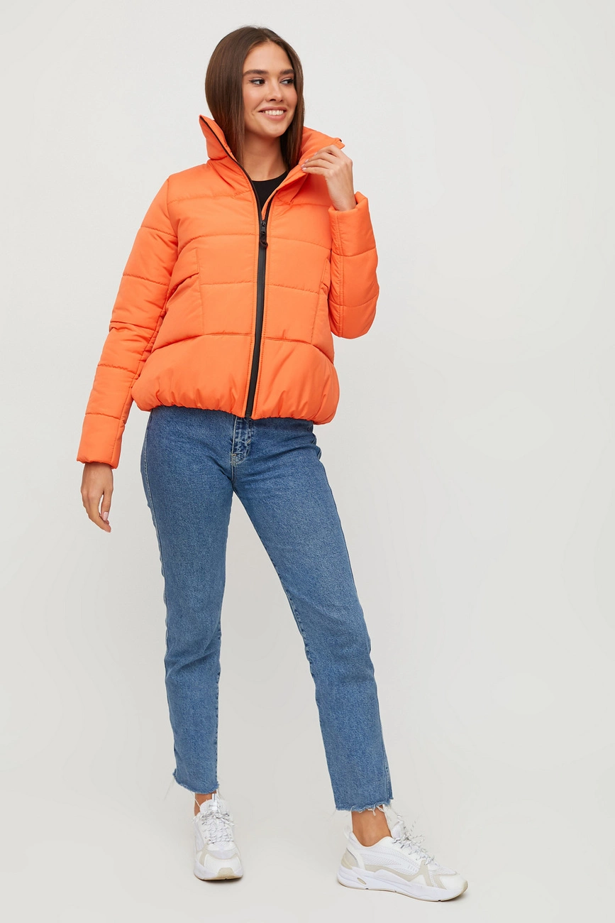 Зимняя объемная куртка с высоким воротником; накладные карманы; рукава и низ изделия присобраны на резинку