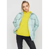 Куртка-рубашка свободного кроя из плащевки с небольшим утеплителем, отложной воротник, спущенная линия плеча, длина до середины бедра, на груди накладные карманы. Застежка: кнопки.