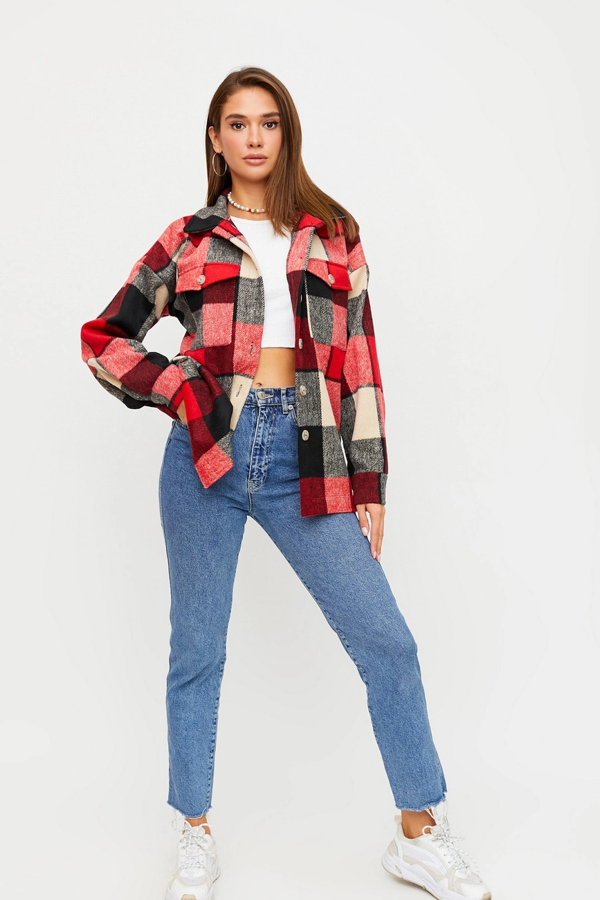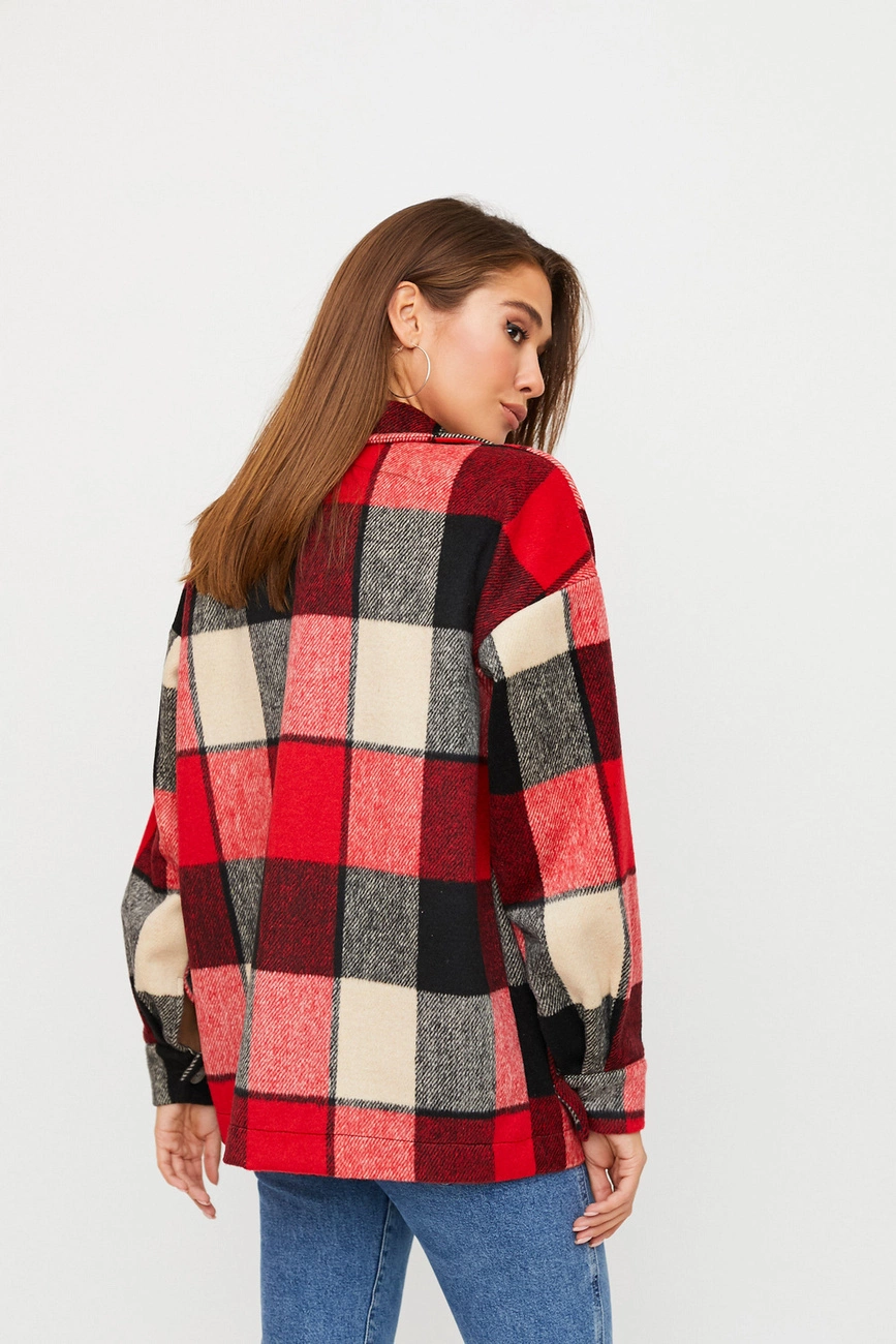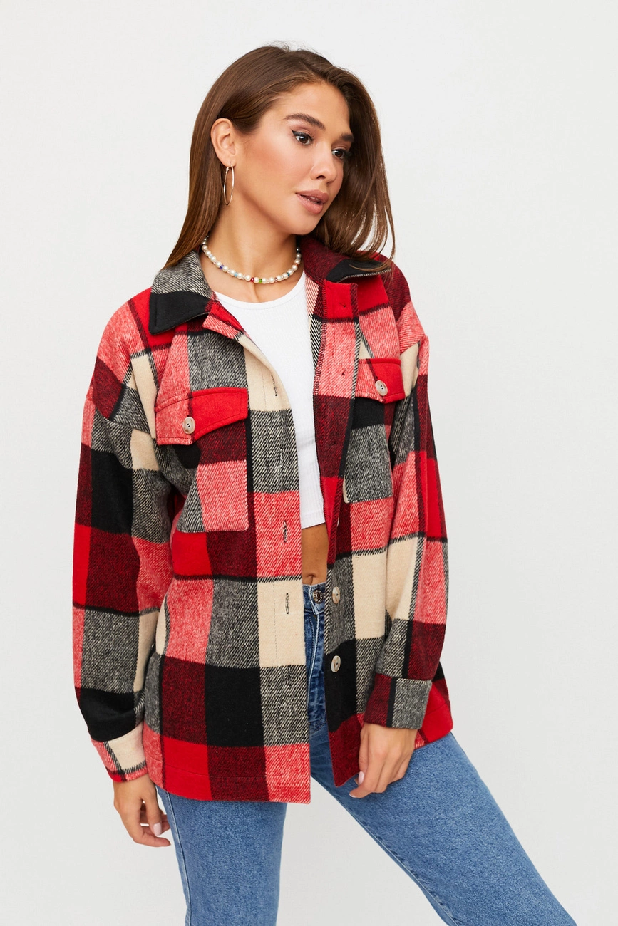 Куртка-рубашка свободного кроя их плотного кашемира, отложной воротник, спущенная линия плеча, длина до середины бедра, на груди накладные карманы.