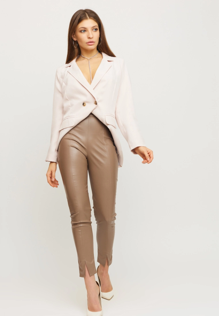 Лосины из эластичной экокожи, посадка высокая, спереди разрезы