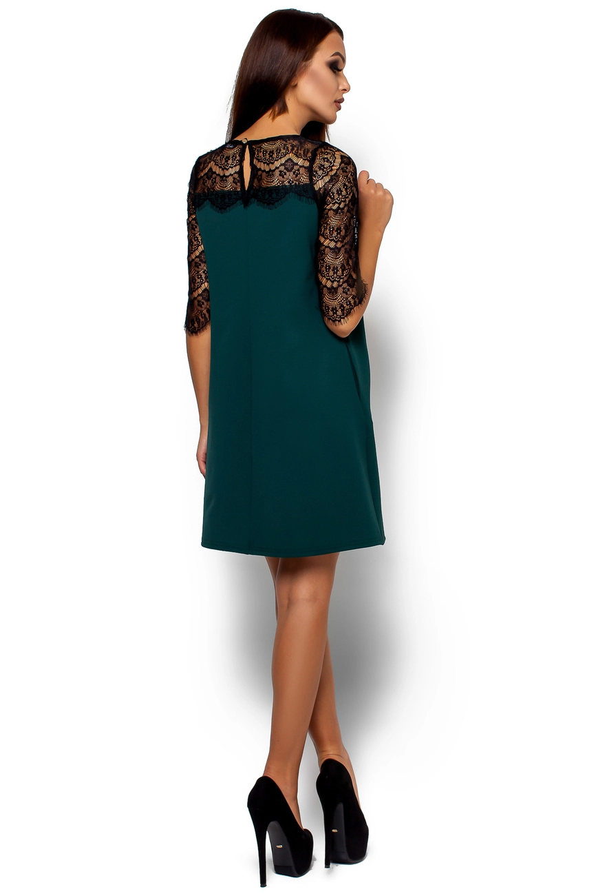 Материал: креп-дайвинг, гипюр Размер: S (42-44), M (44-46), L (46-48) Длина изделия (размер S): 85см Длина рукава (размер S): 35см Полуобхват плечи/грудь/талия/бедра (размер S): 32/44/48/54см Рекомендации по уходу: ручная стирка в прохладной воде Платье свободного кроя из эластичного фактурного трикотажа, верх платья и рукава выполнен из тонкого кружева черного цвета, сзади застегивается на пуговку, рукав 3/4, в боковых швах есть карманы