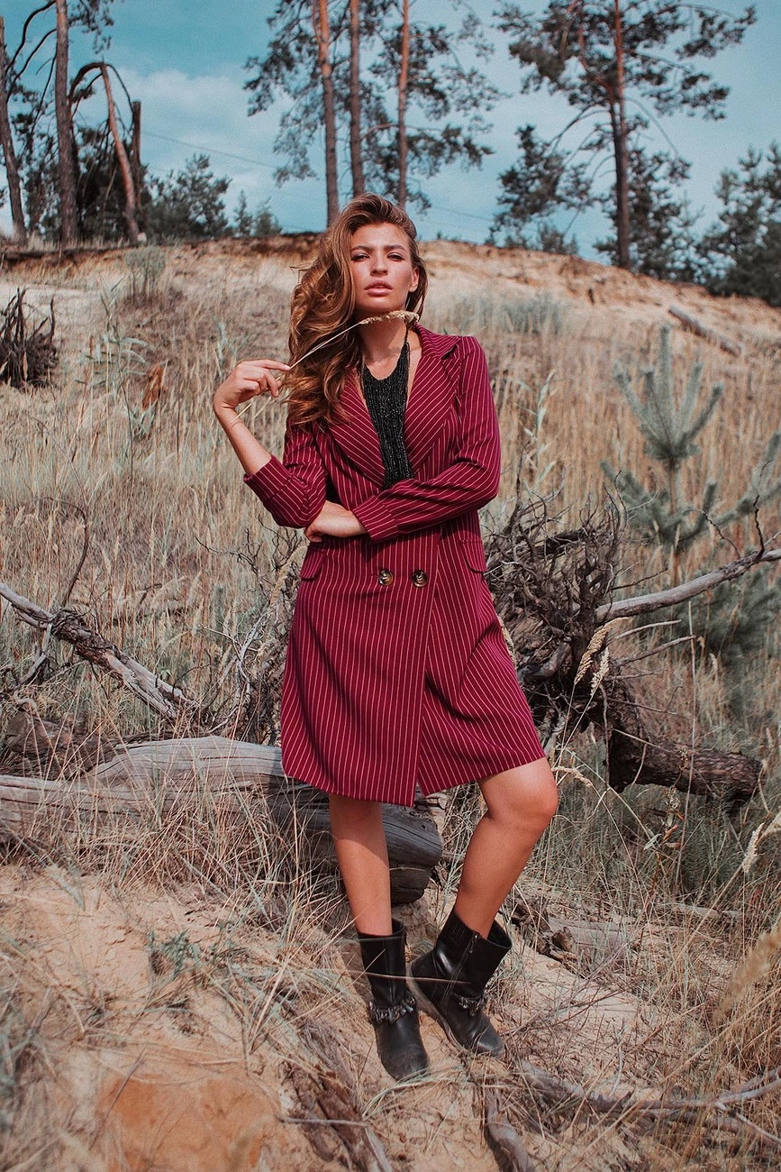 Материал: костюмная ткань Размер: S, M, L Растяжимость ткани: слабая Длина изделия (размер S): 90 см Длина рукава (размер S): 65 см Полуобхват плечи/грудь/талия/бедра (размер S): 36/45/46/50 см Рекомендации по уходу: ручная стирка в прохладной воде Платье-пиджак средней длины прямого кроя из костюмной ткани, V-образный вырез, английский воротник, впереди накладные карманы-клапаны (обманки); рукав длинный с манжетом. Застежка: пуговицы.