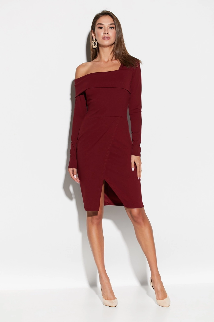 Материал: креп-дайвинг Размер: S, M, L Растяжимость ткани: тянется Длина изделия (размер S): 94см Длина рукава (размер S): 60 см Полуобхват грудь/талия/бедра (размер S): 38/34/47 см Рекомендации по уходу: ручная стирка в прохладной воде Платье средней длины из тянущейся фактурной ткани. Асимметричный воротник с отворотом, открытое плечо, длинные рукава, имитация запаха
