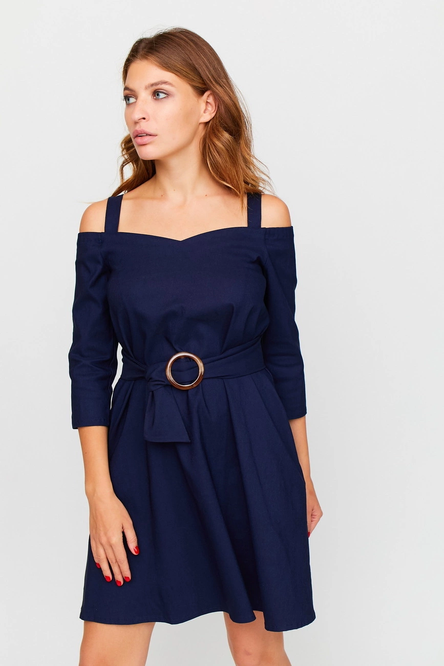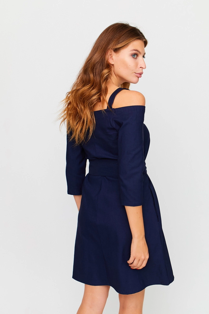 Материал: бенгалин джинс Размер: S, M, L Растяжимость ткани: сильная Длина изделия (размер S): 90 см Длина/ширина рукава (размер S): 38/15 см Полуобхват грудь/талия/бедра (размер S): 40/47/57 см Рекомендации по уходу: ручная стирка в прохладной воде Платье длины мини из очень эластичного джинсового трикотажа, открытые плечи, есть бретели, рукав 3/4, в боковых швах есть карманы, пояс в комплекте