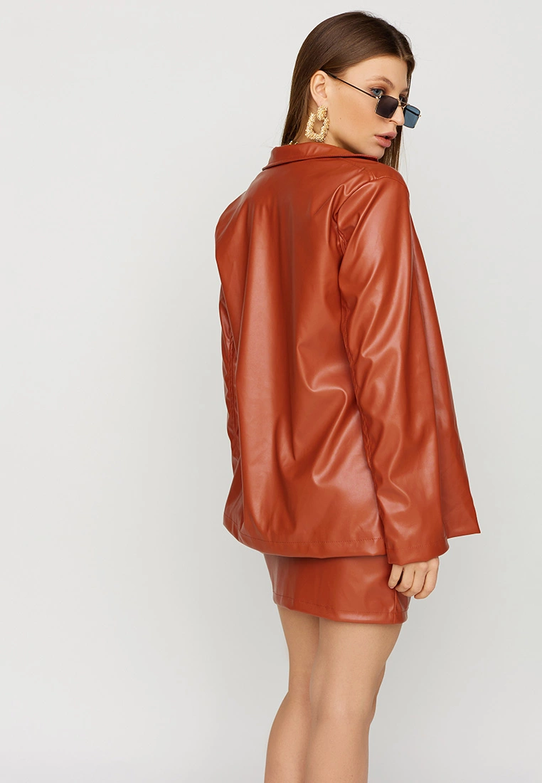 Платье футляр мини длины из эластичной эко-кожи; декоративная отстрочка по переду; застежка: потайная молния в боковом шве.
