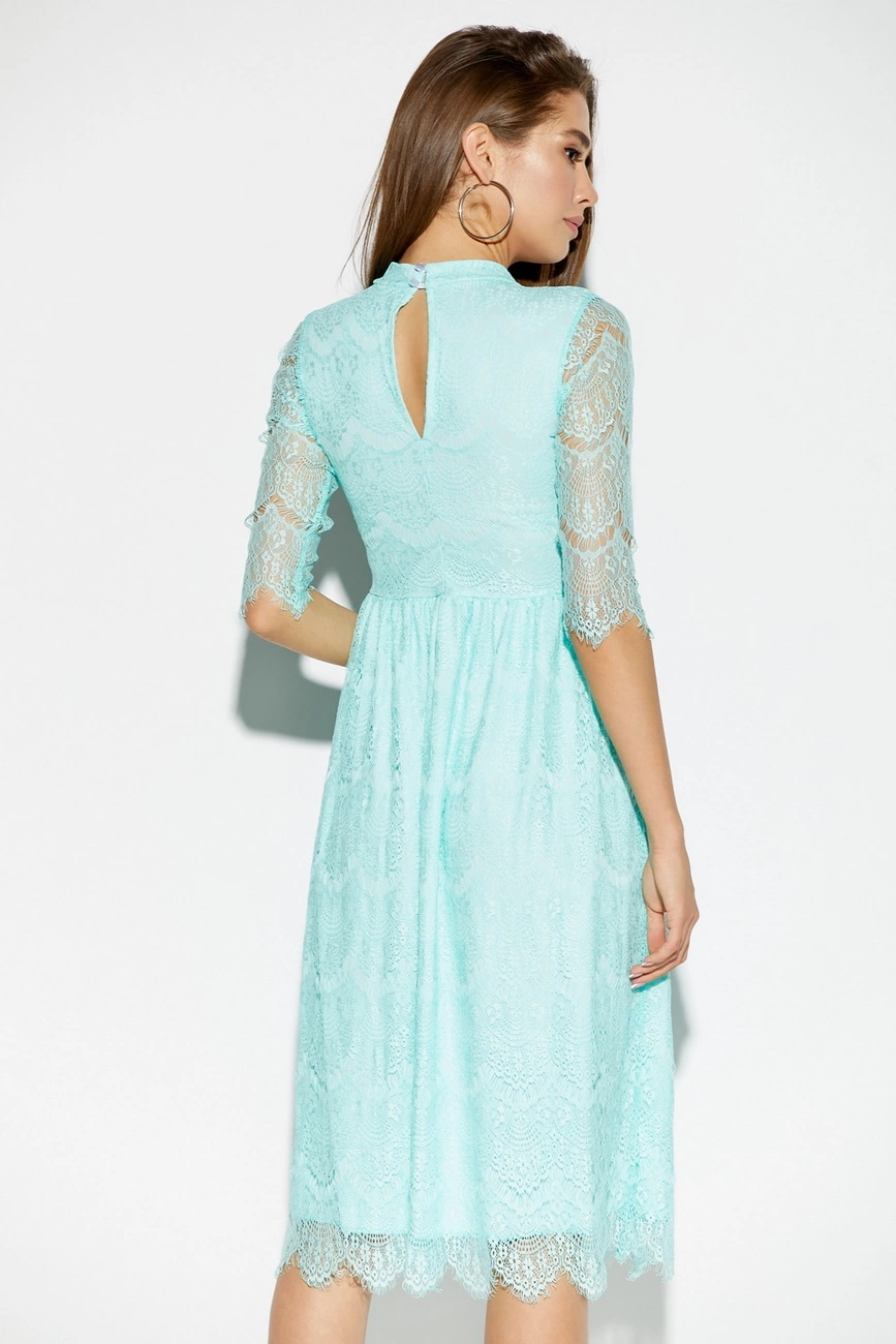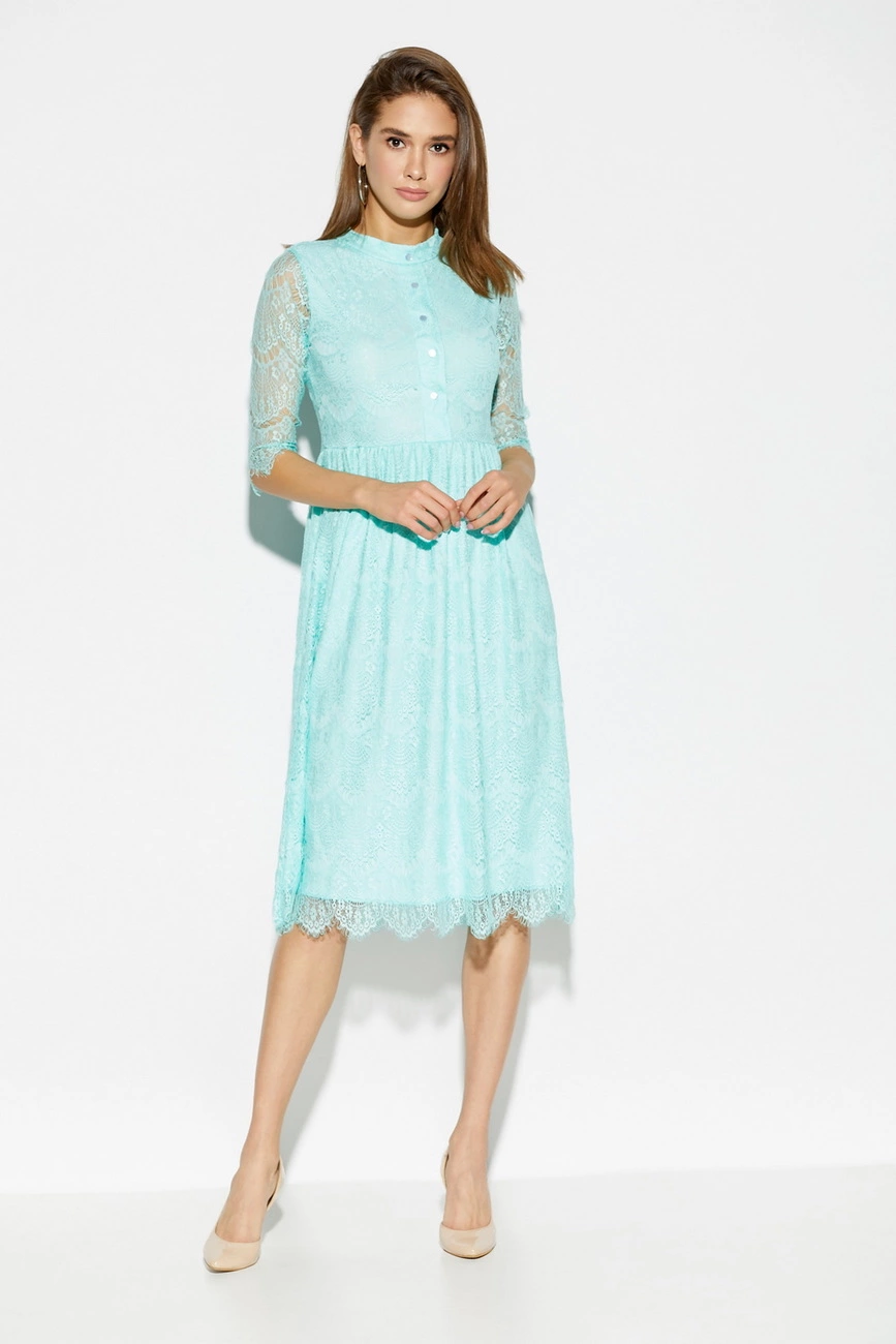 Материал: гипюр Размер: S, M, L Растяжимость ткани: не тянется Длина изделия (размер S): 110 см Длина рукава (размер S): 40 см Полуобхват плечи/грудь/талия/бедра (размер S): 34/42/34/64 см Рекомендации по уходу: ручная стирка в прохладной воде Платье из тонкой ажурной ткани с приталенным верхом и свободной юбкой миди длины, невысокий воротник-стойка, впереди декоративная планка с пуговицами, рукав 3/4, по спинке вырез-капелька, который застегивается на две пуговицы