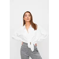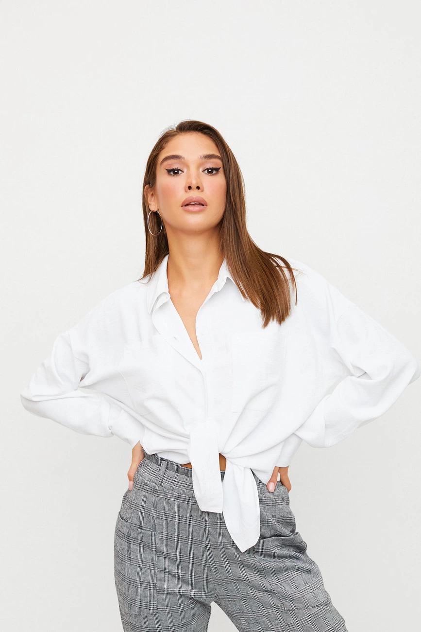 Рубашка свободного кроя из легкой блузочной ткани, спущенная линия плеча, воротник-стойка, длинный рукав с манжетами, накладные карманы на груди