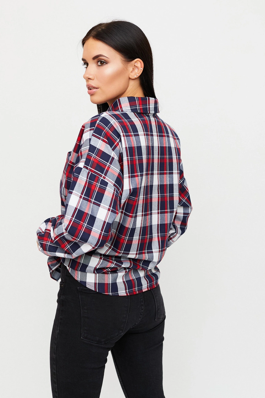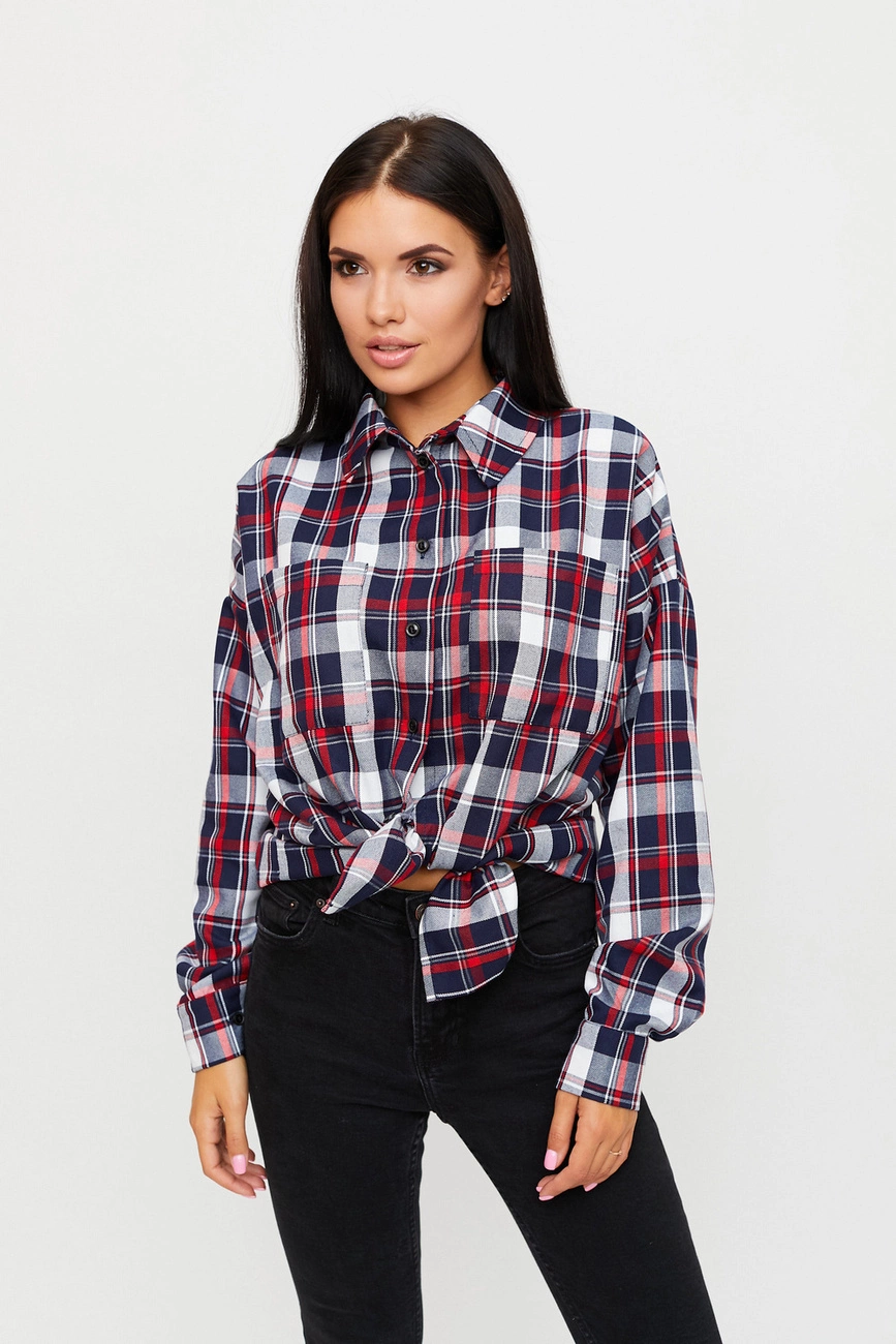 Рубашка oversize из плотной костюмной ткани, спущенная линия плеча, воротник-стойка, длинный рукав с манжетами, накладные карманы на груди
