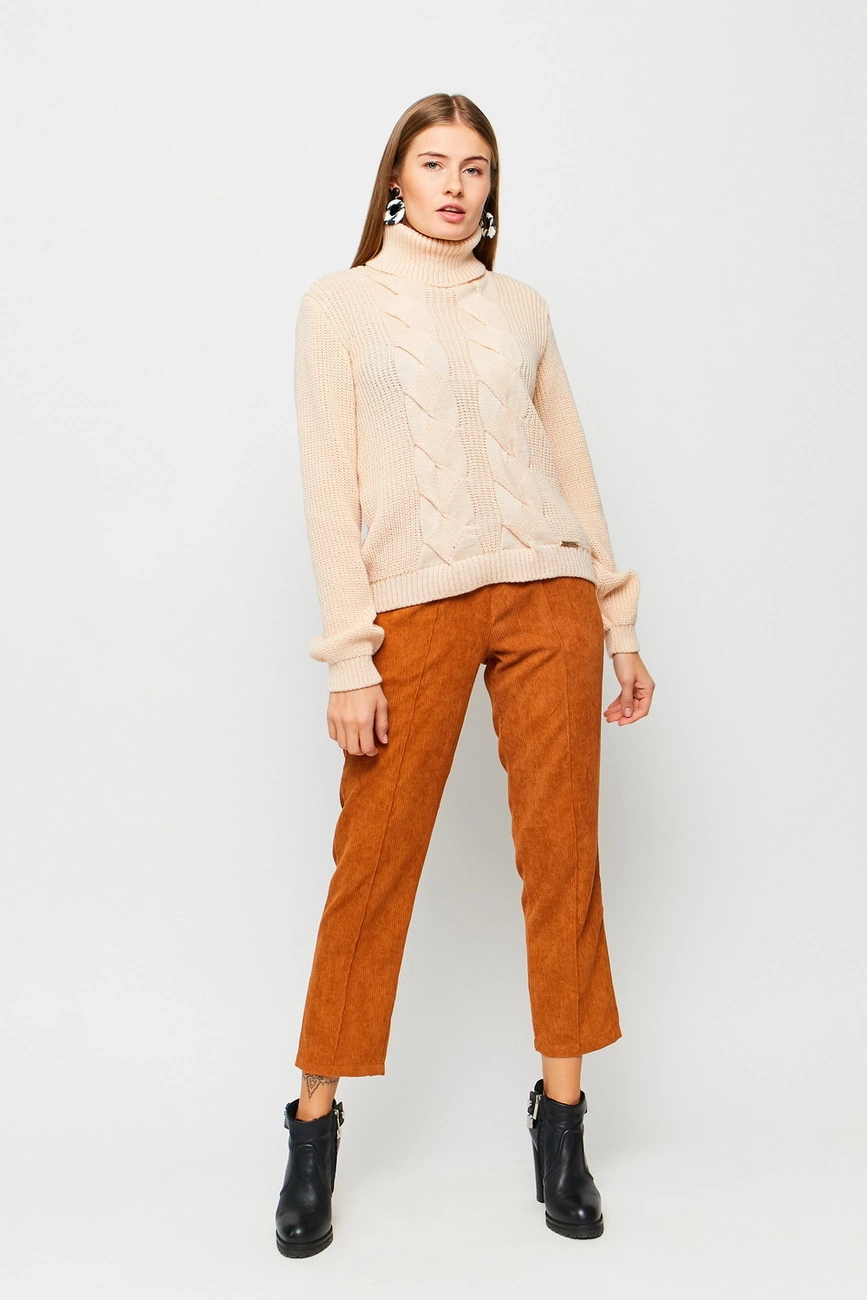 Брюки-дудочки из не тянущейся фактурной ткани с карманами, впереди стрелки-отстрочки, длина 7/8