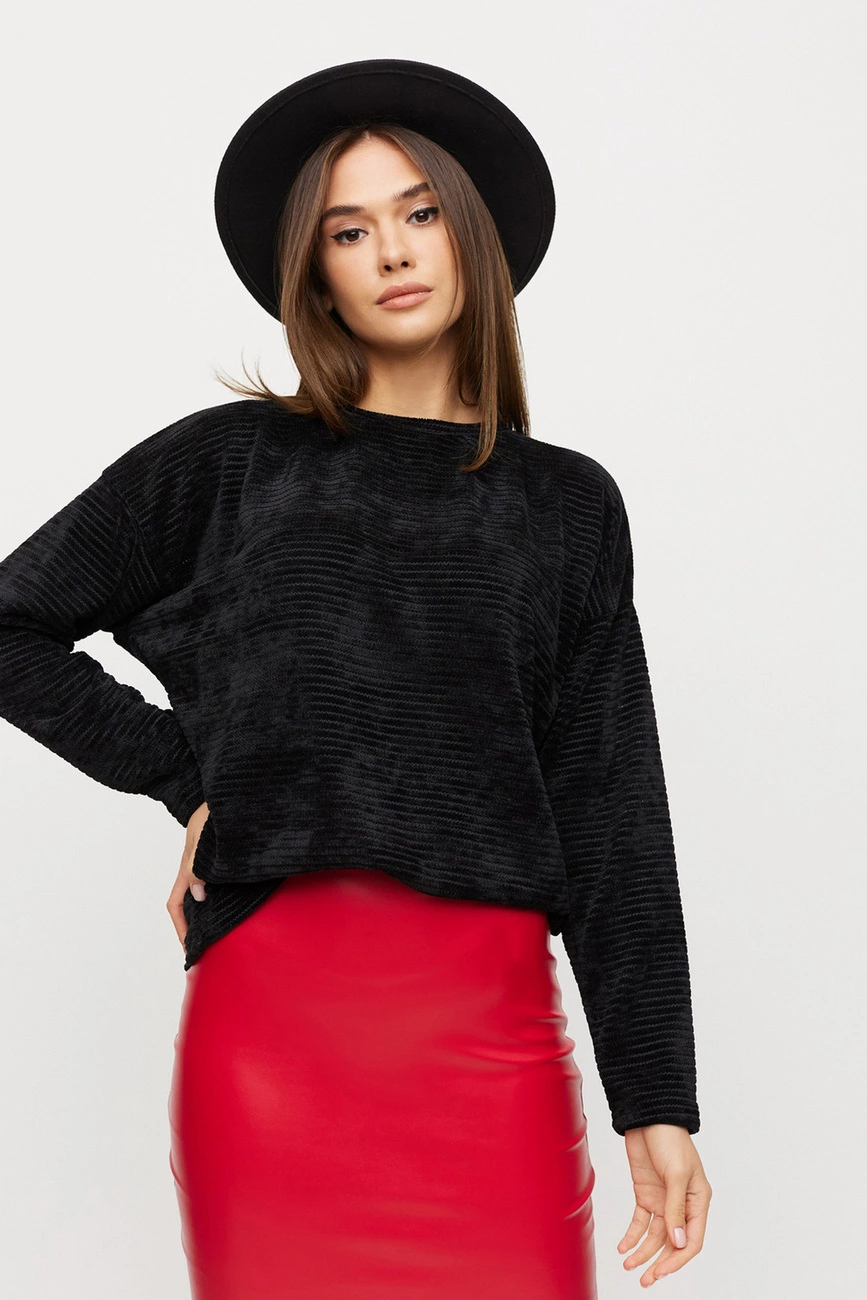 Свитер из эластичного трикотажа средней длины, рукав длинный