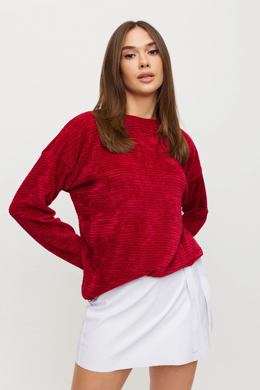 Свитер из эластичного трикотажа средней длины, рукав длинный