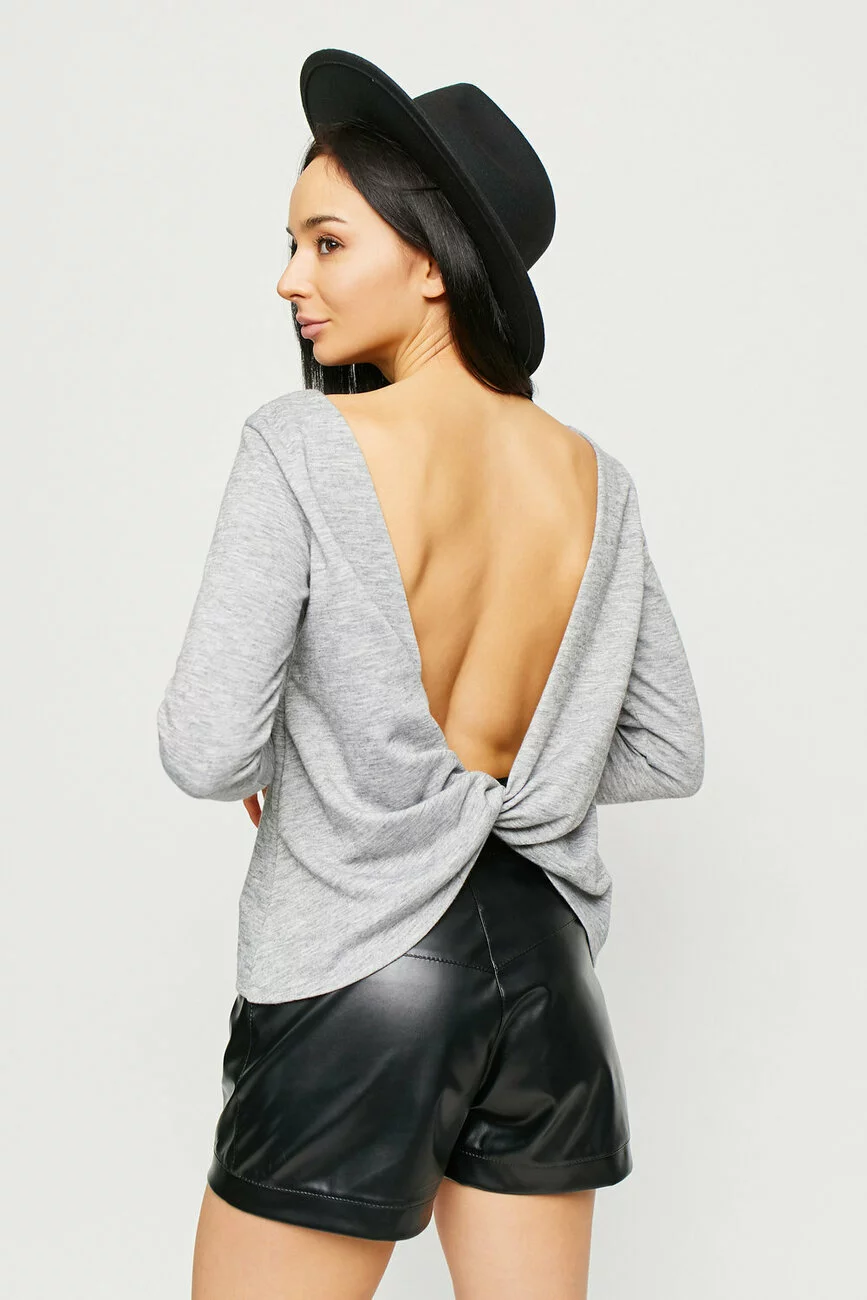 Свитшот с открытой спиной из плотного тянущегося трикотажа; длинный рукав