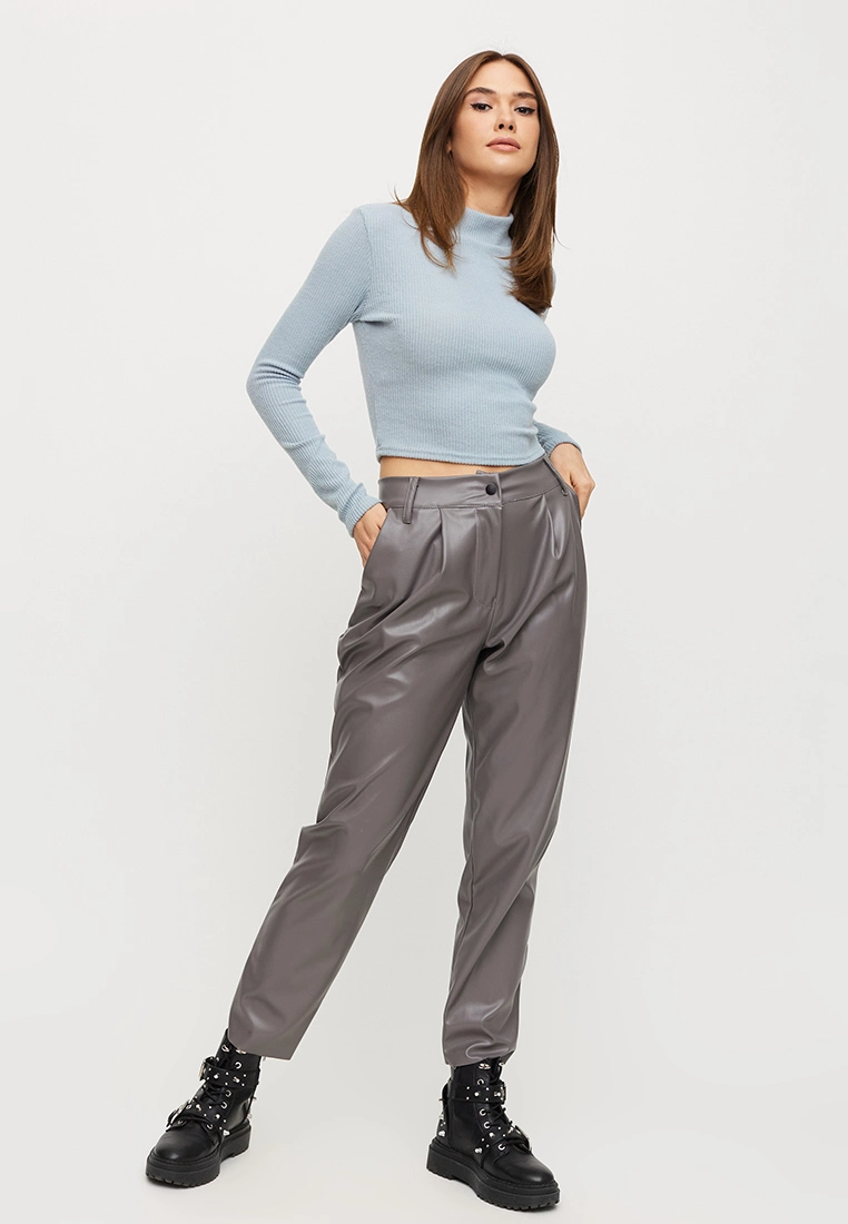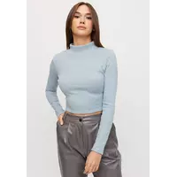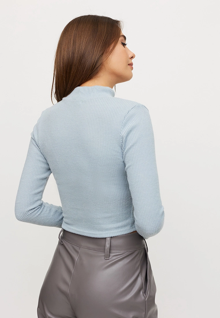 Кроп-топ с длинным рукавом из теплого трикотажа в рубчик, невысокий воротник