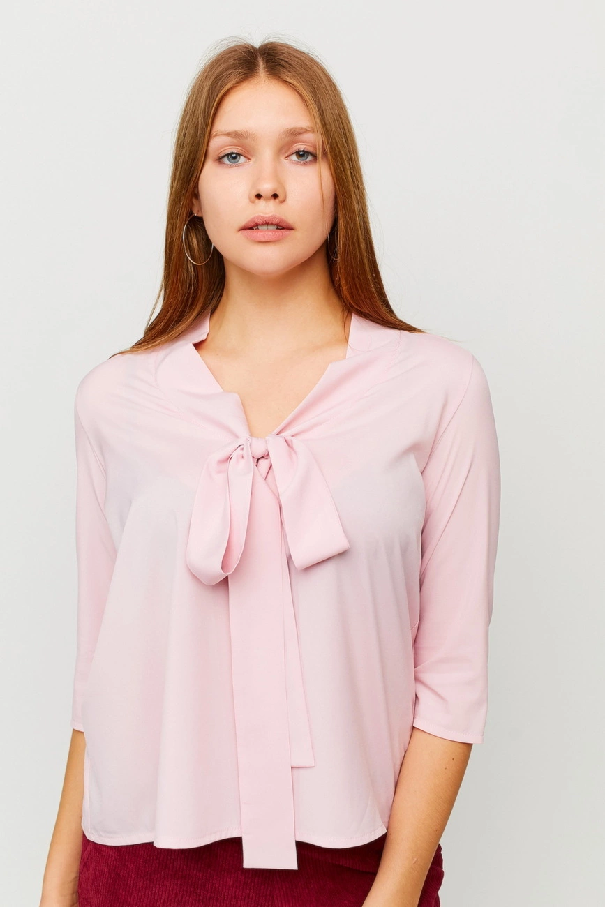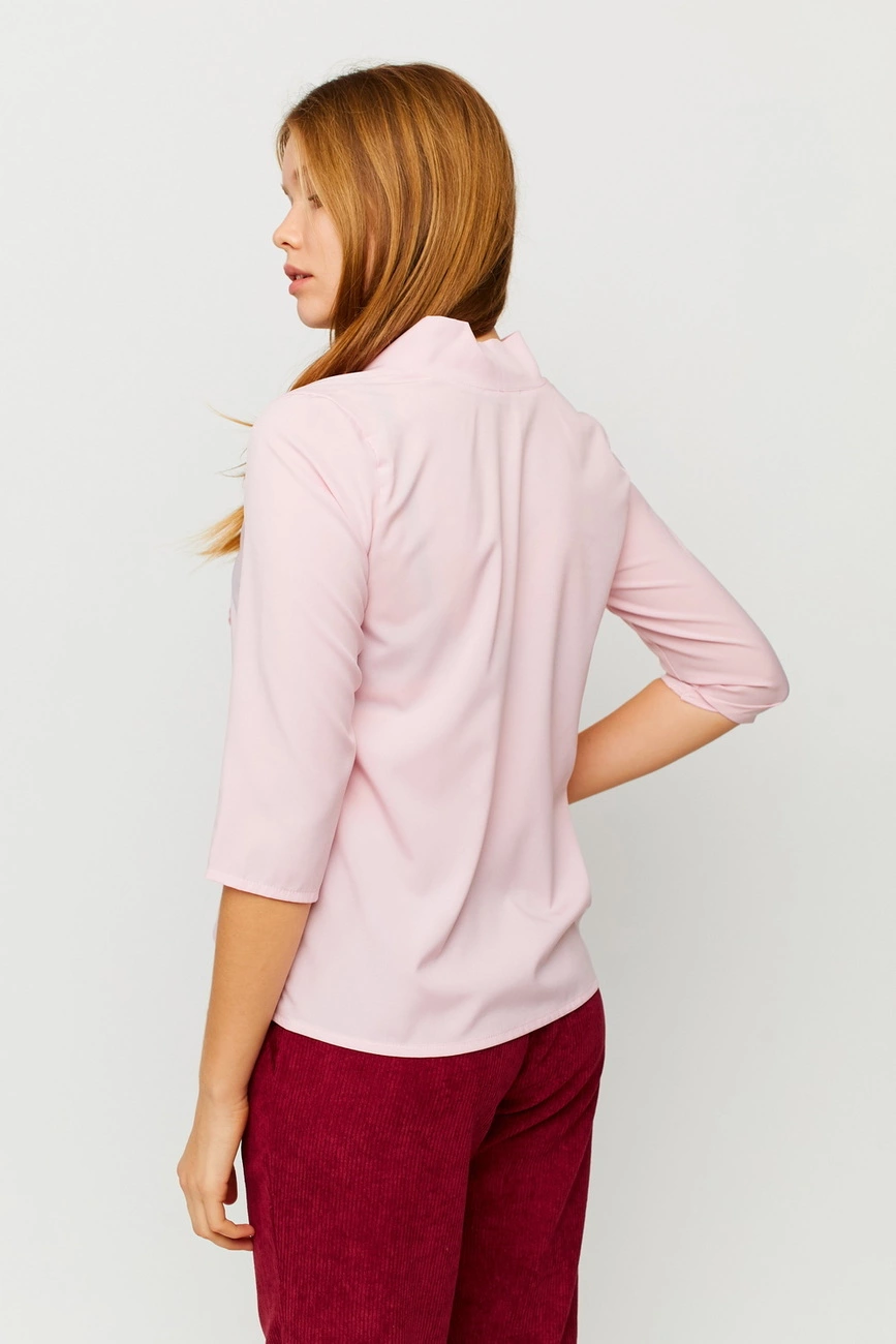 ткани, рукав 3/4, декольте - V-образный вырез, декорированный