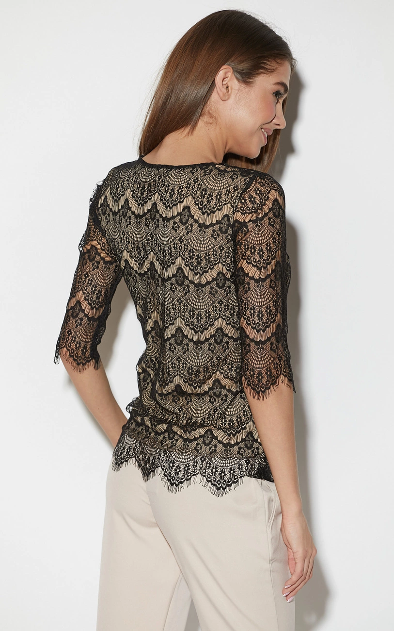 красивого гипюра с рукавом 3/4, трикотажная подкладка в тон гипюра