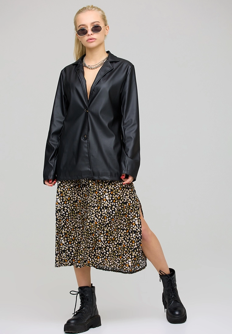 Юбка миди с запахом трапециевидного кроя из софта, посадка на талии; застежка: завязки, потайная пуговица.