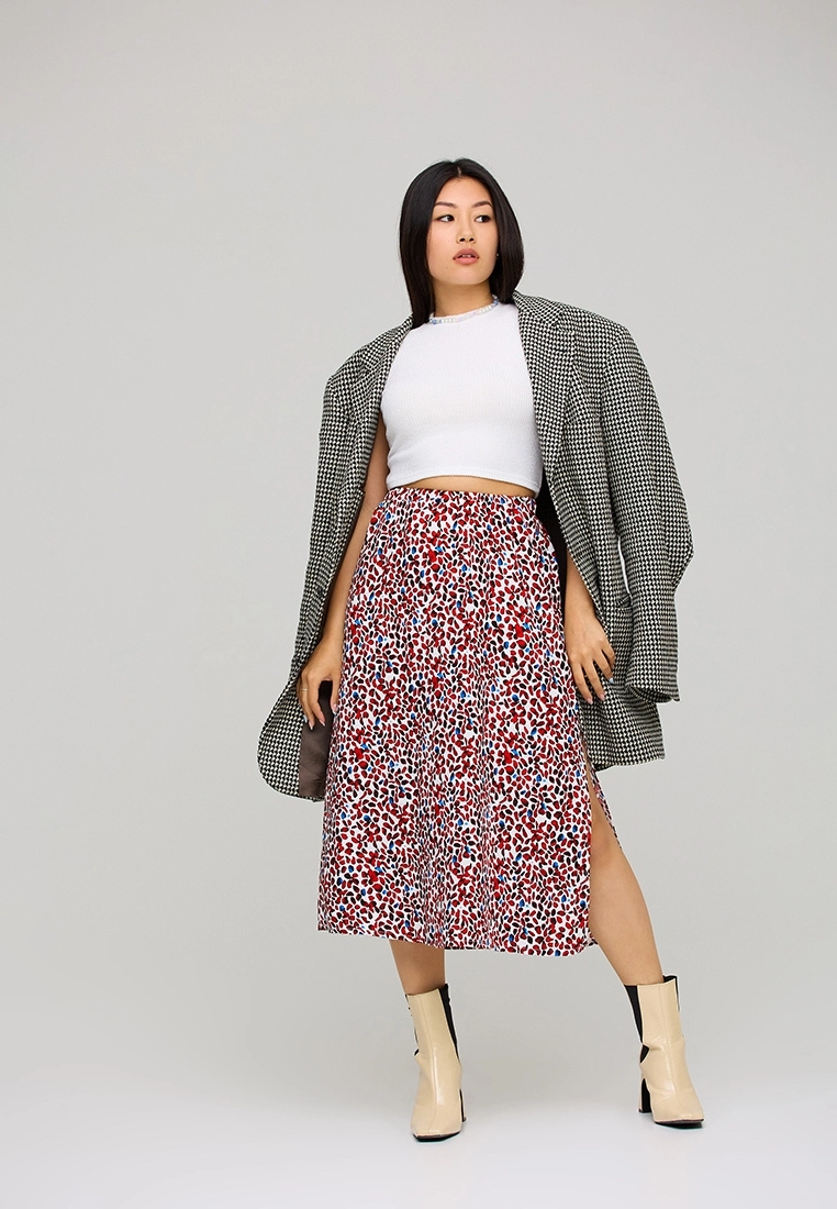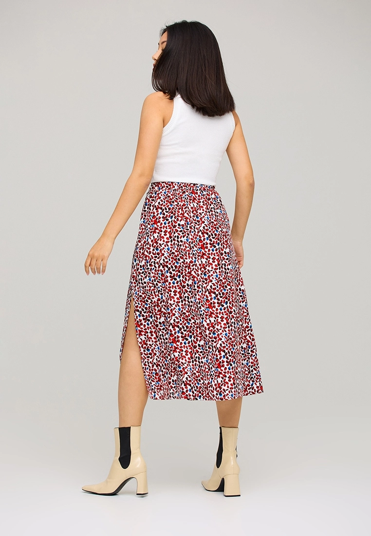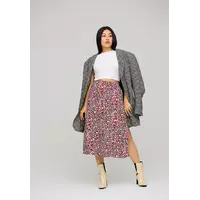 Юбка миди с запахом трапециевидного кроя из софта, посадка на талии; застежка: завязки, потайная пуговица.